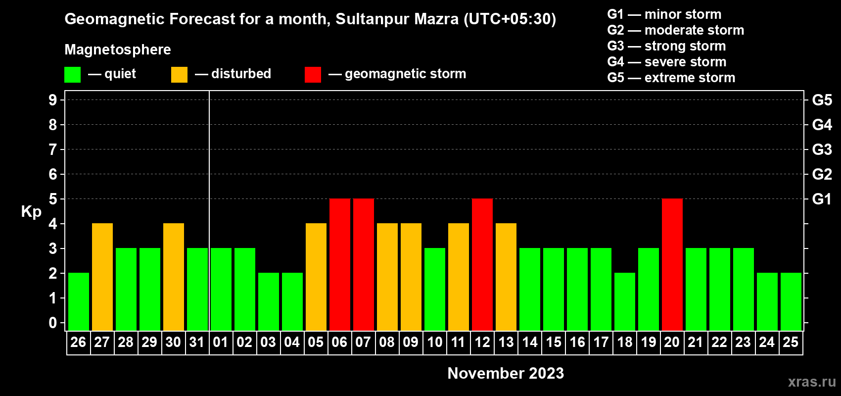 Geomagnetic storm forecast in Sultanpur Mazra for Oct 26, 2023