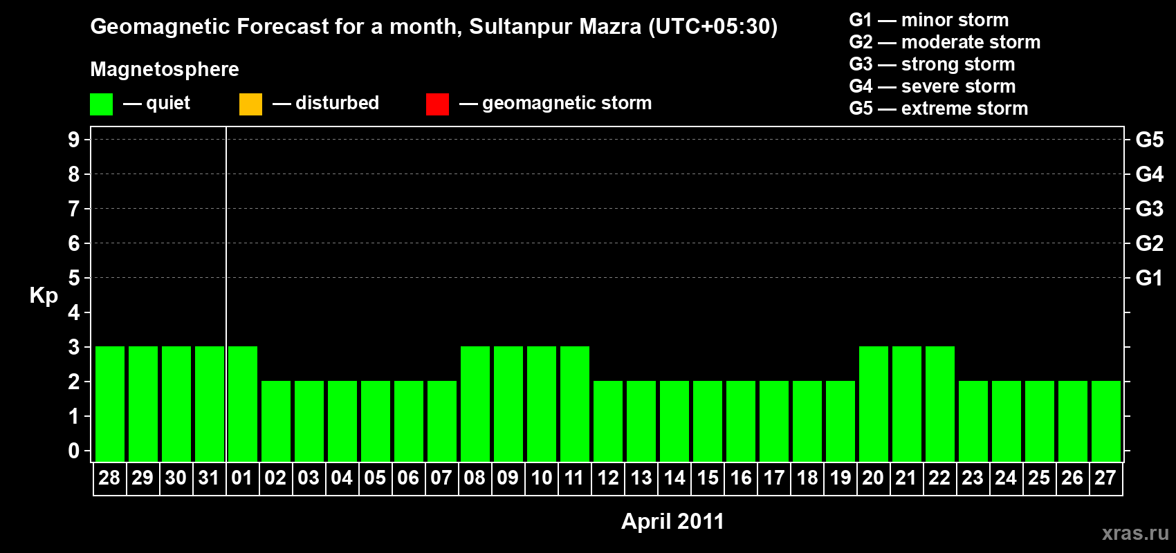 Geomagnetic activity forecast in Sultanpur Mazra — Mar 28, 2011