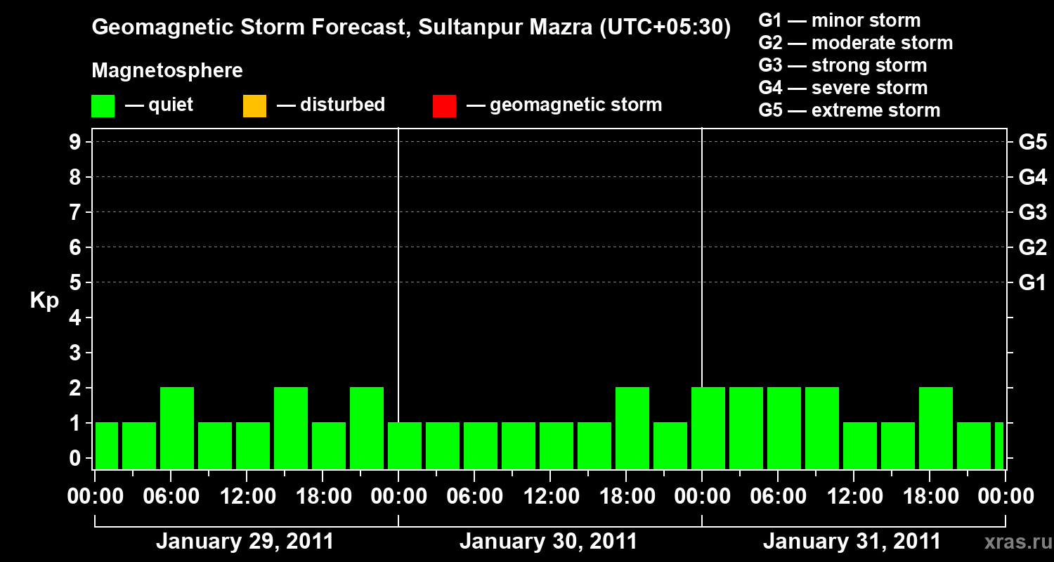 Geomagnetic storm forecast in Sultanpur Mazra for Jan 29, 2011