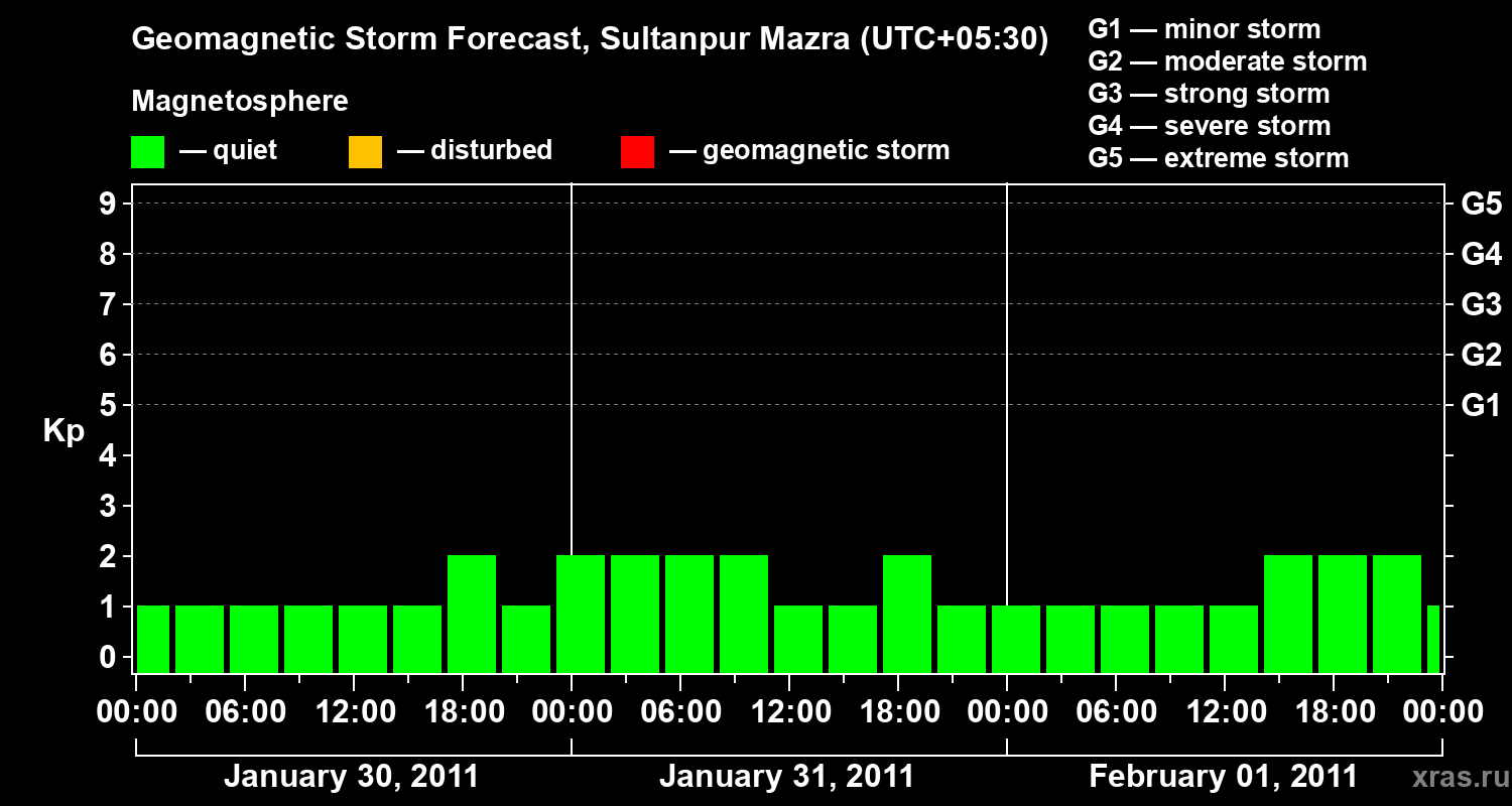 Geomagnetic storm forecast in Sultanpur Mazra for Jan 30, 2011