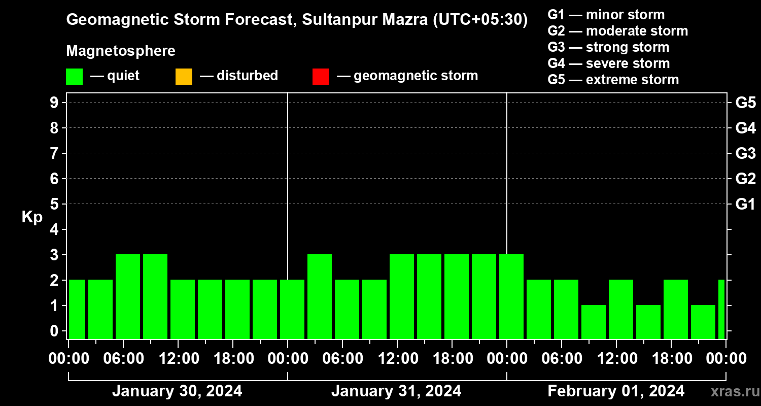 Geomagnetic storm forecast in Sultanpur Mazra for Jan 30, 2024