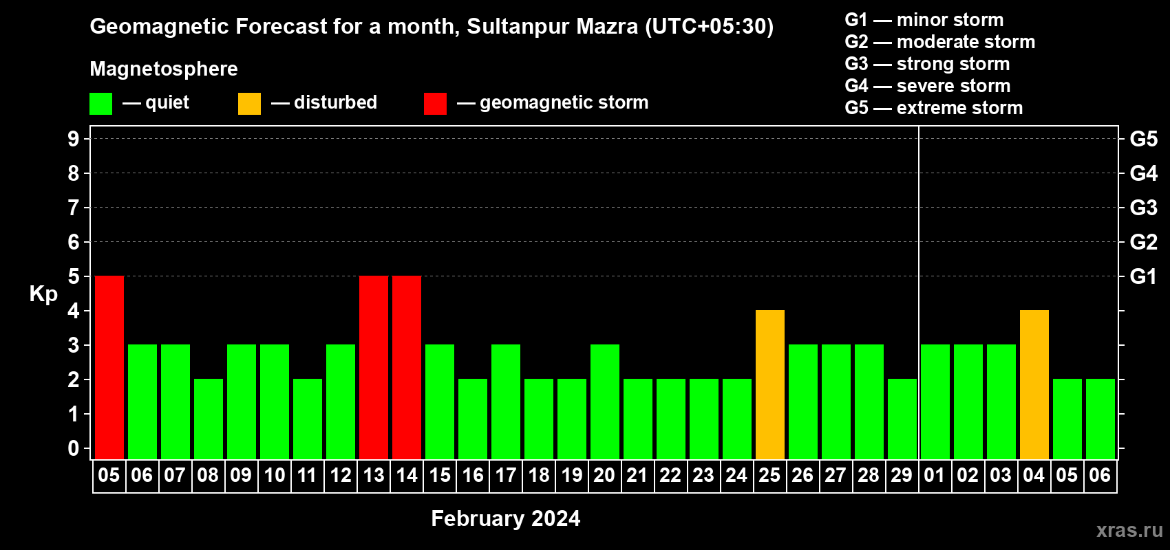Geomagnetic storm forecast in Sultanpur Mazra for Feb 05, 2024