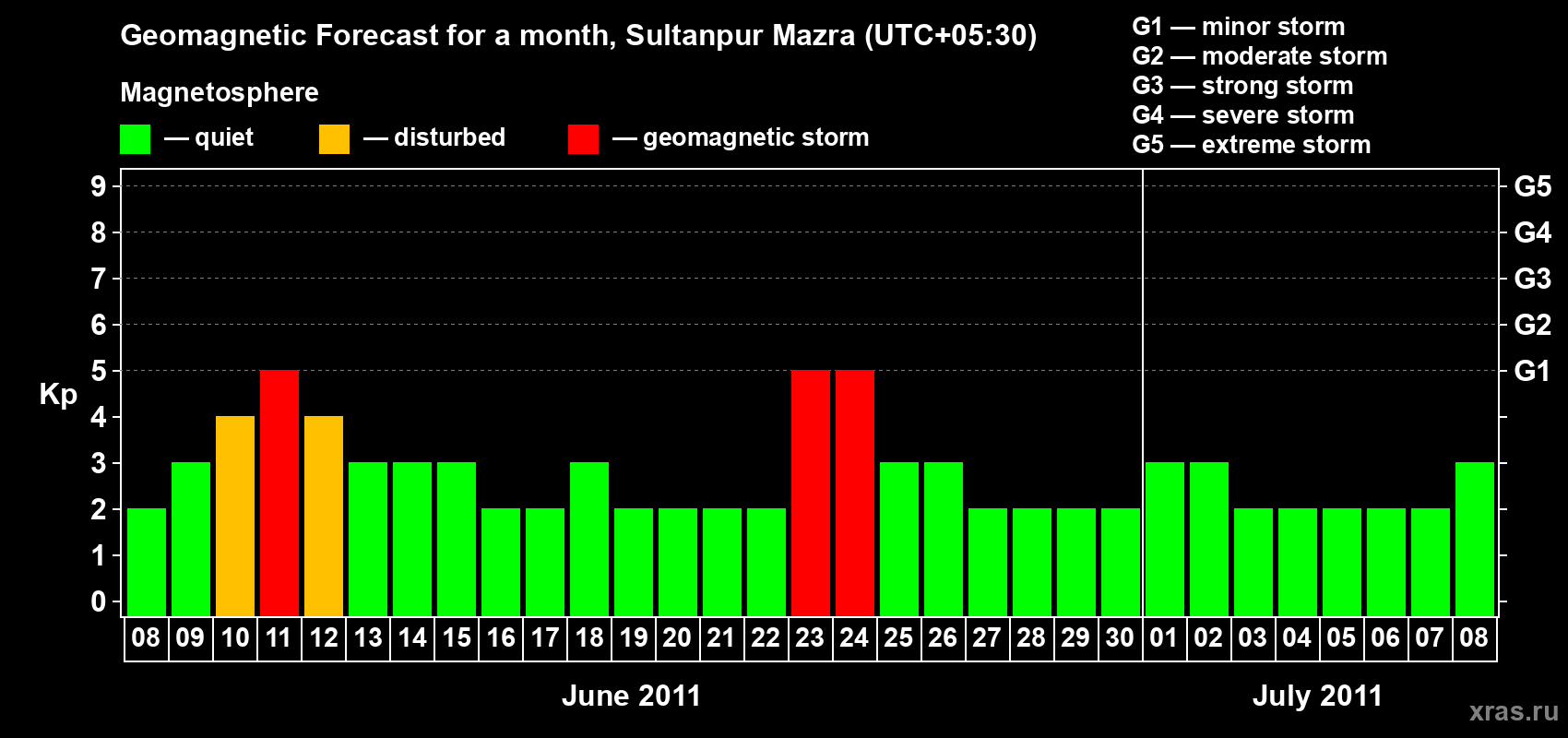 Geomagnetic storm forecast in Sultanpur Mazra for Jun 08, 2011
