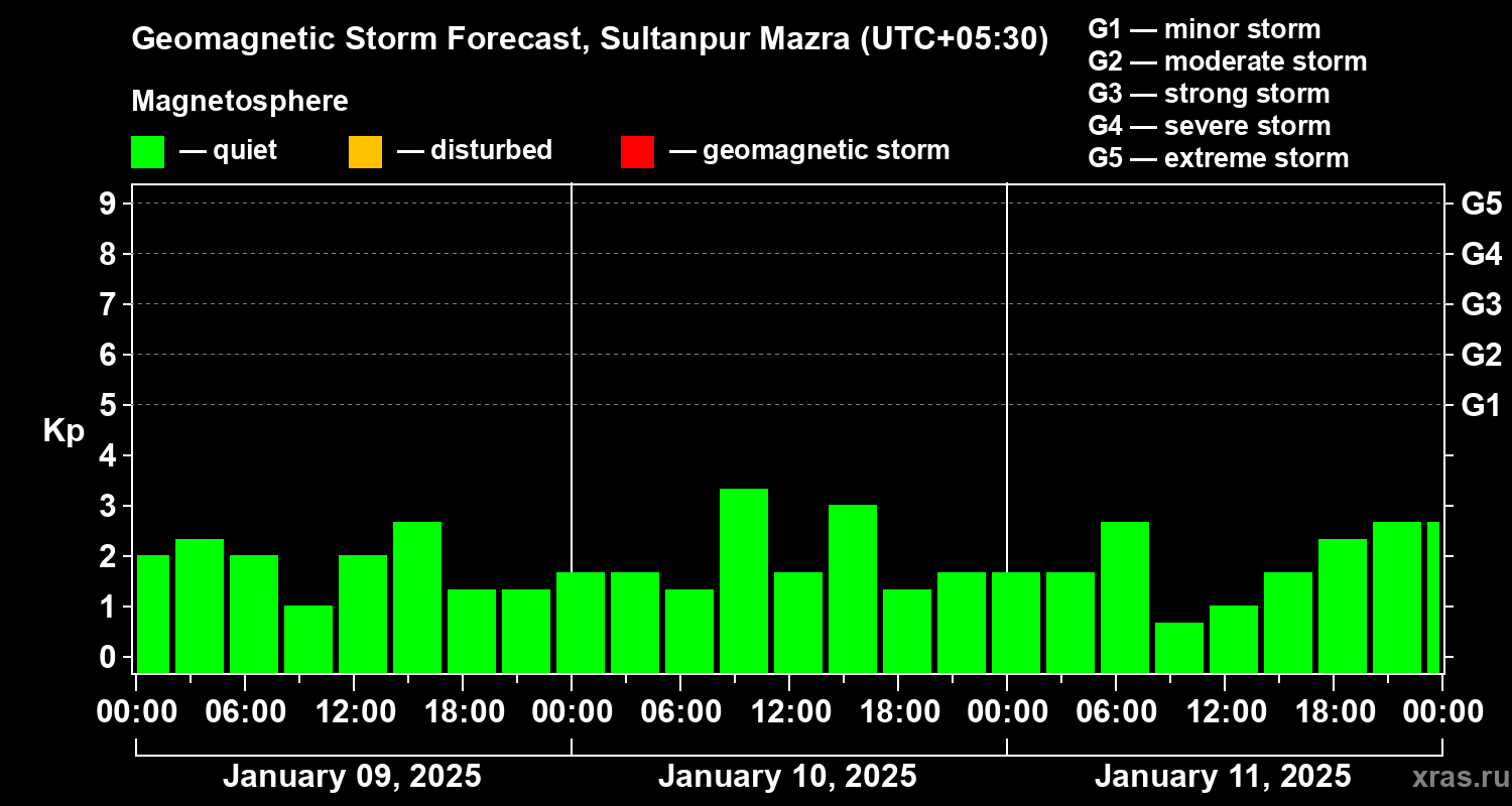 Geomagnetic storm forecast in Sultanpur Mazra for Jan 09, 2025