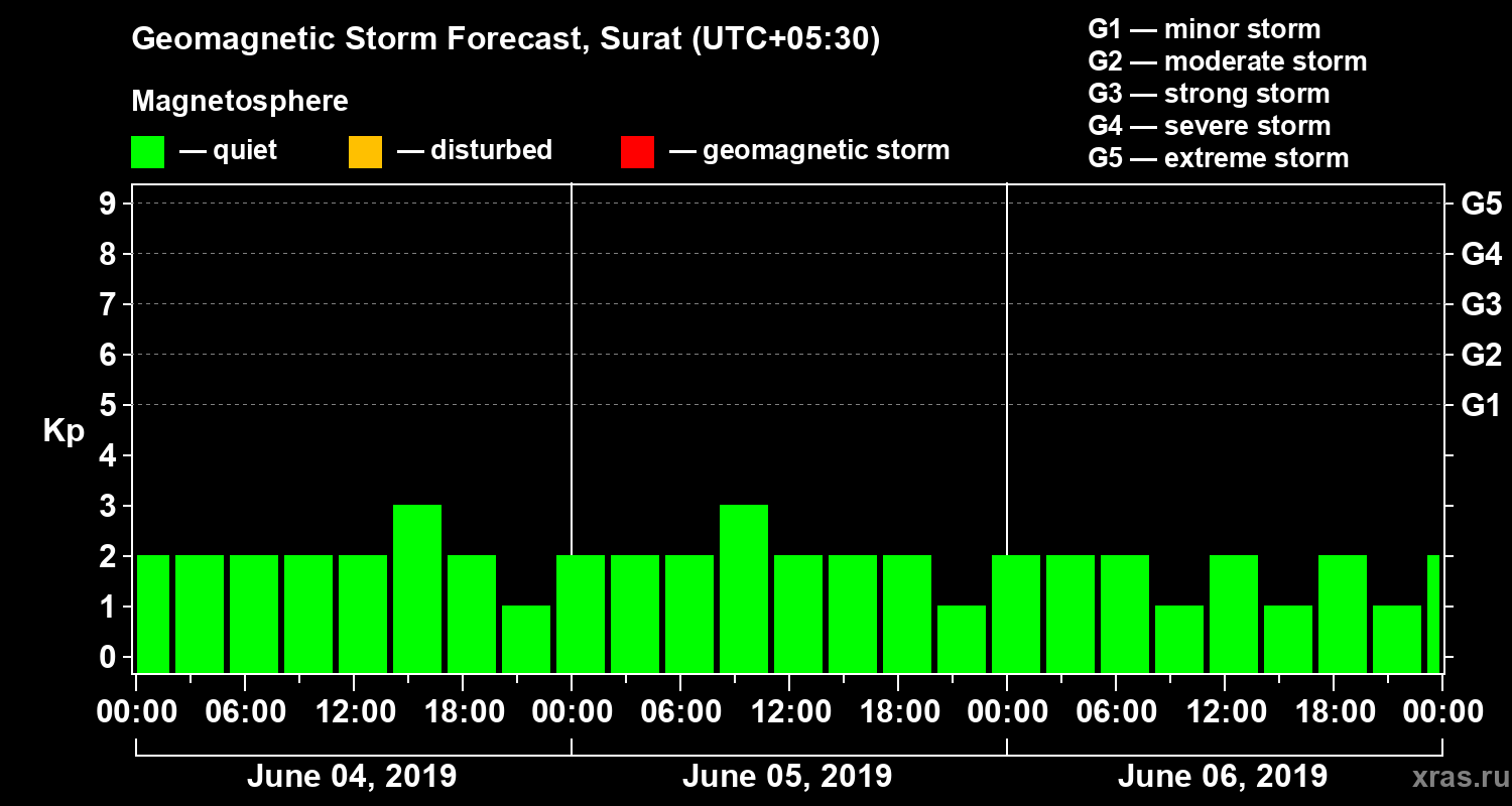 Geomagnetic storm forecast in Surat for Jun 04, 2019