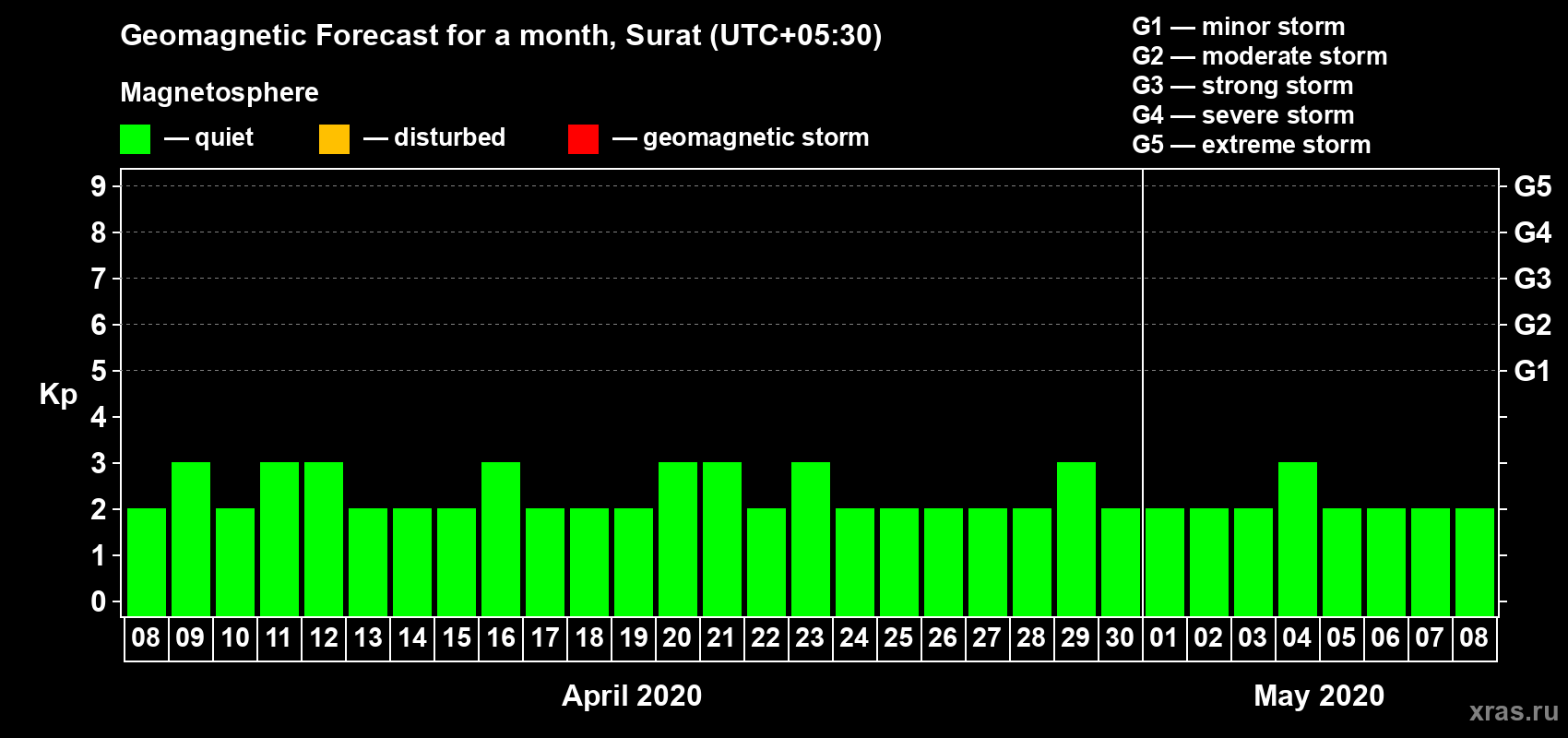 Geomagnetic storm forecast in Surat for Apr 08, 2020
