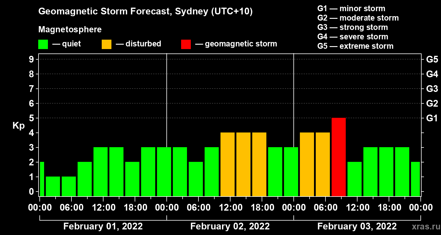 Geomagnetic storm forecast in Sydney for Feb 01, 2022