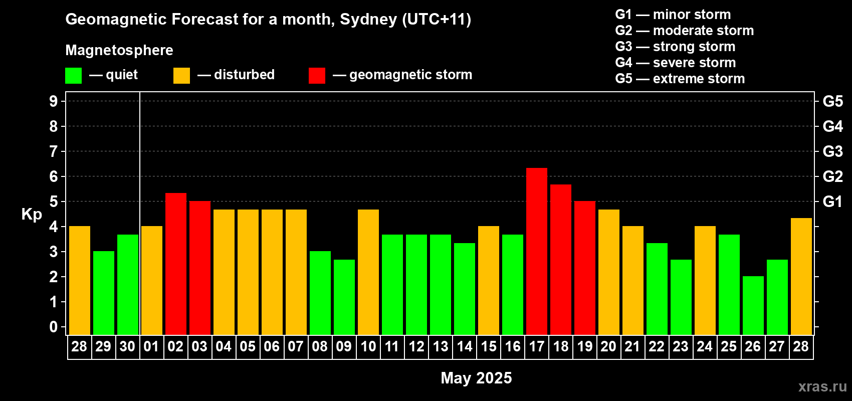 Geomagnetic storm forecast in Sydney for Apr 28, 2025