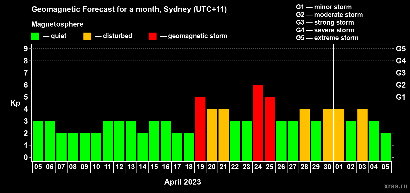 Geomagnetic storm forecast in Sydney for Apr 05, 2023