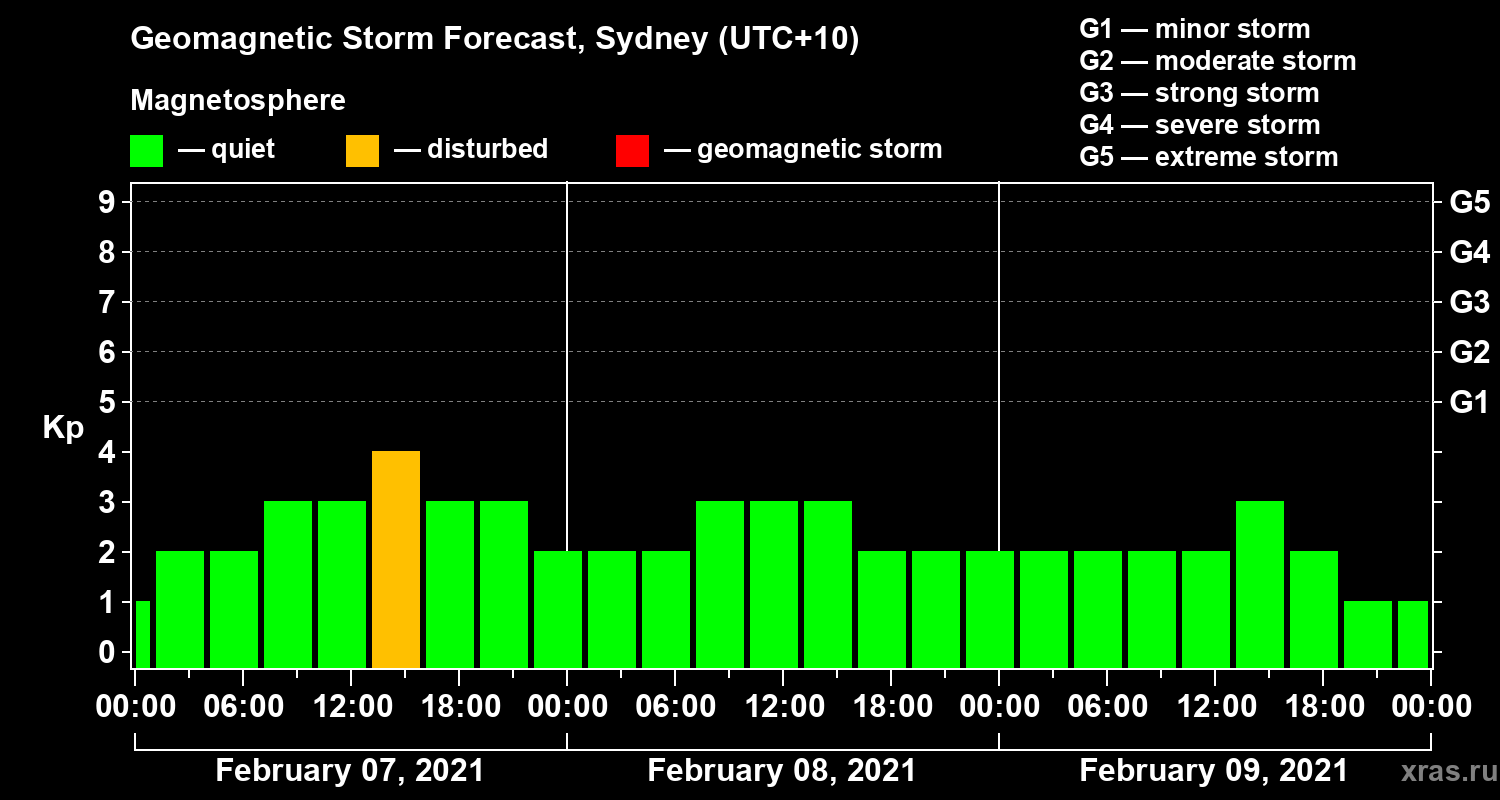 Geomagnetic storm forecast in Sydney for Feb 07, 2021