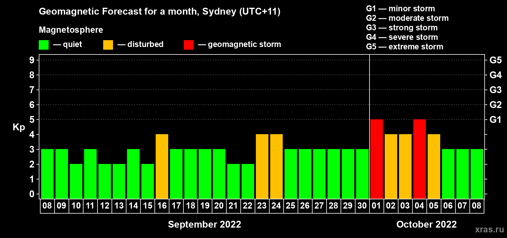 Geomagnetic storm forecast in Sydney for Sep 08, 2022
