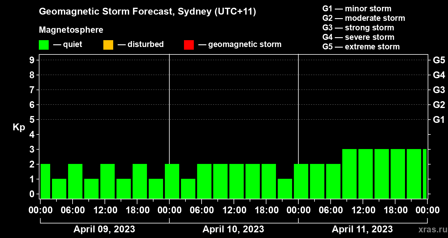 Geomagnetic storm forecast in Sydney for Apr 09, 2023