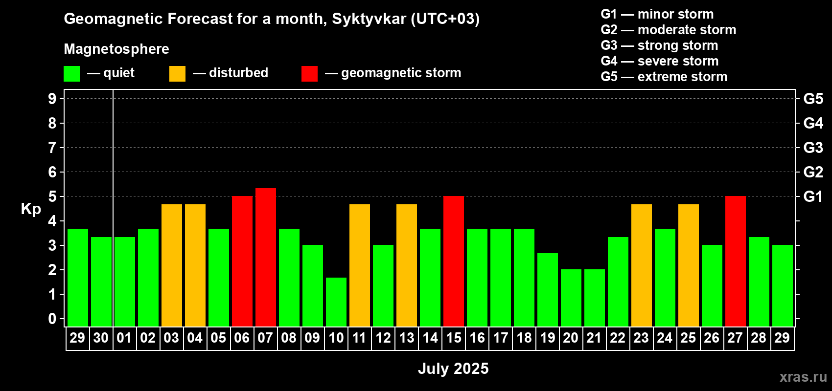 Geomagnetic storm forecast in Syktyvkar for Jun 29, 2025