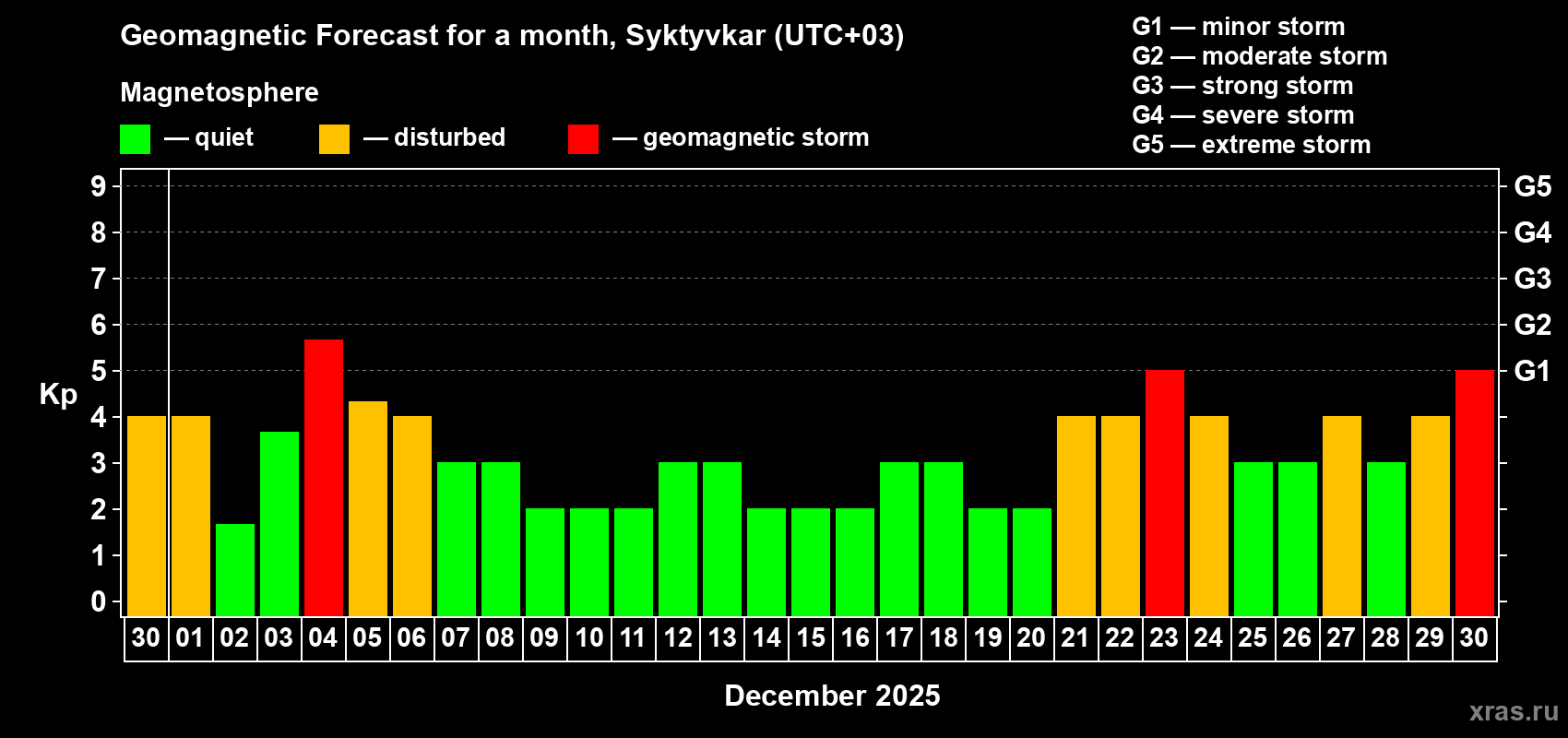 Geomagnetic storm forecast in Syktyvkar for Nov 30, 2025