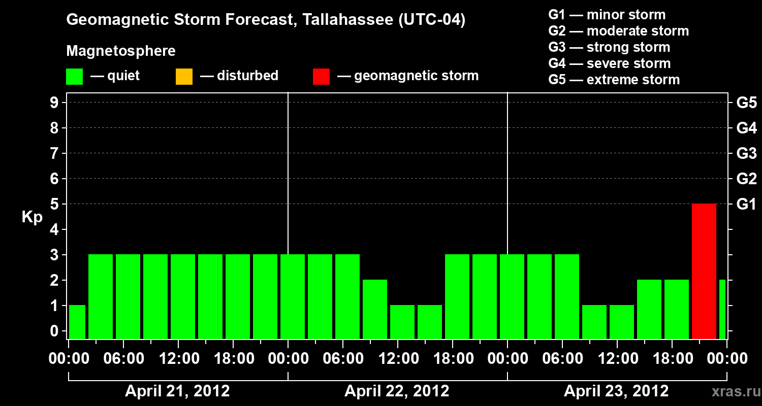 Geomagnetic storm forecast in Tallahassee for Apr 21, 2012