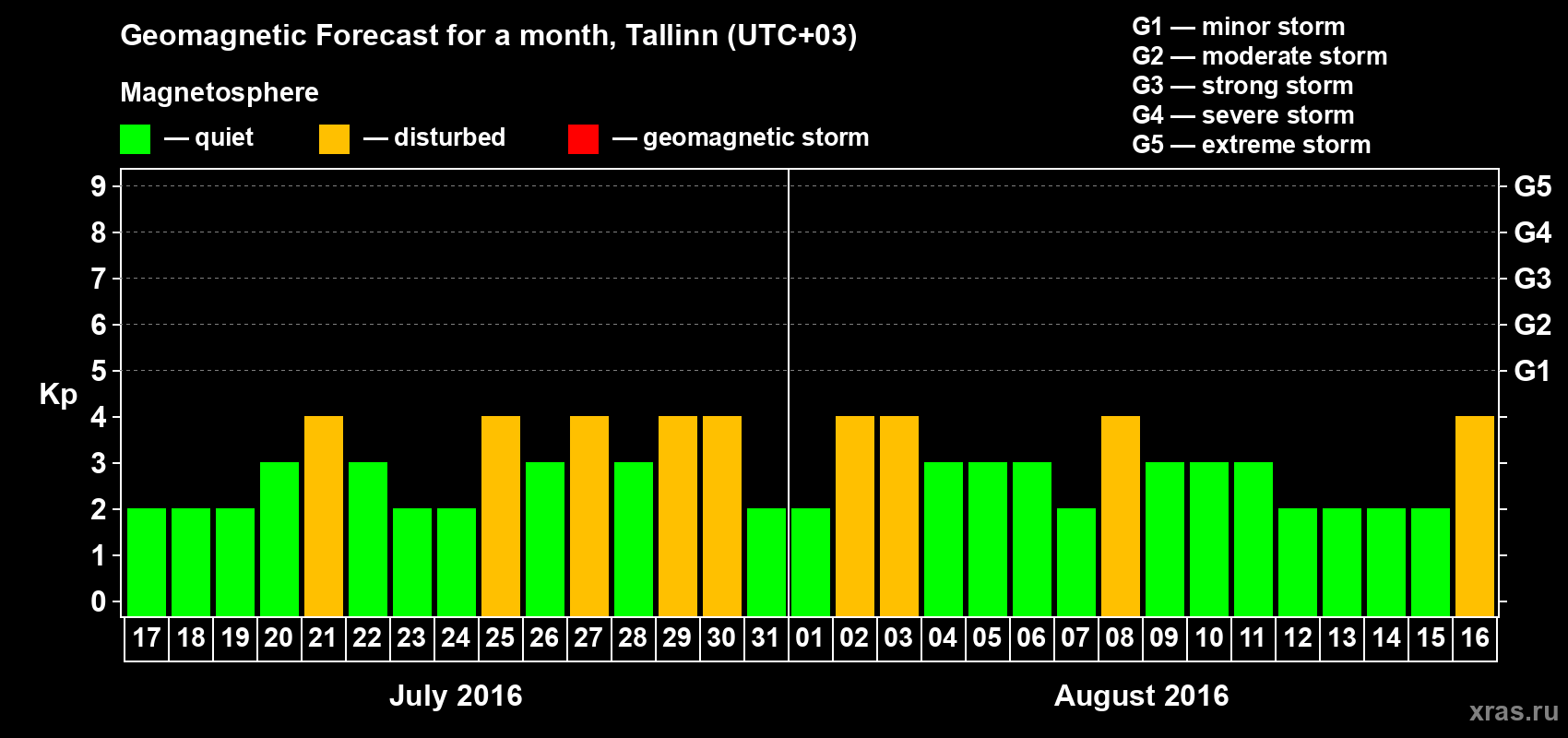 Geomagnetic activity forecast in Tallinn — Jul 17, 2016