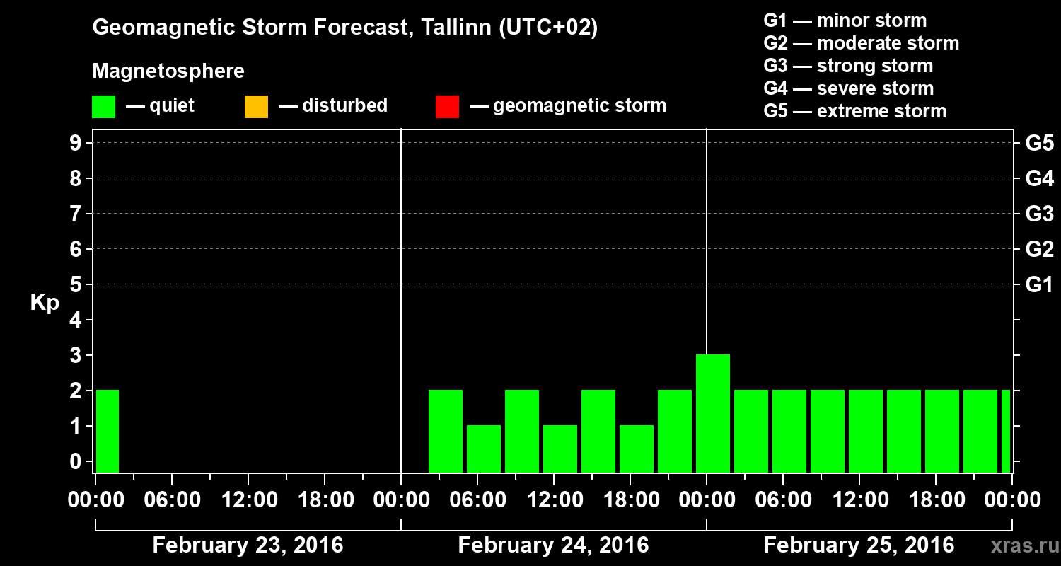 Geomagnetic activity forecast in Tallinn — Feb 23, 2016