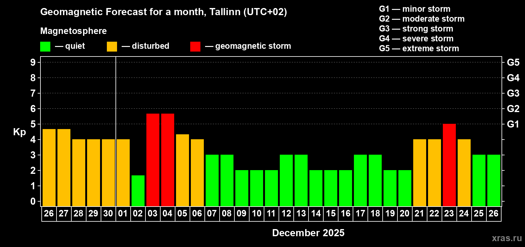 Geomagnetic storm forecast in Tallinn for Nov 26, 2025