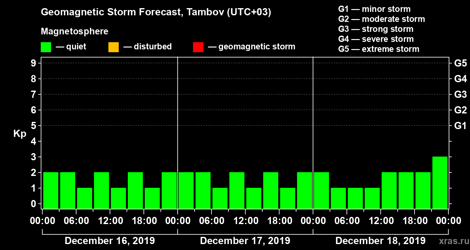 Geomagnetic activity forecast in Tambov — Dec 16, 2019