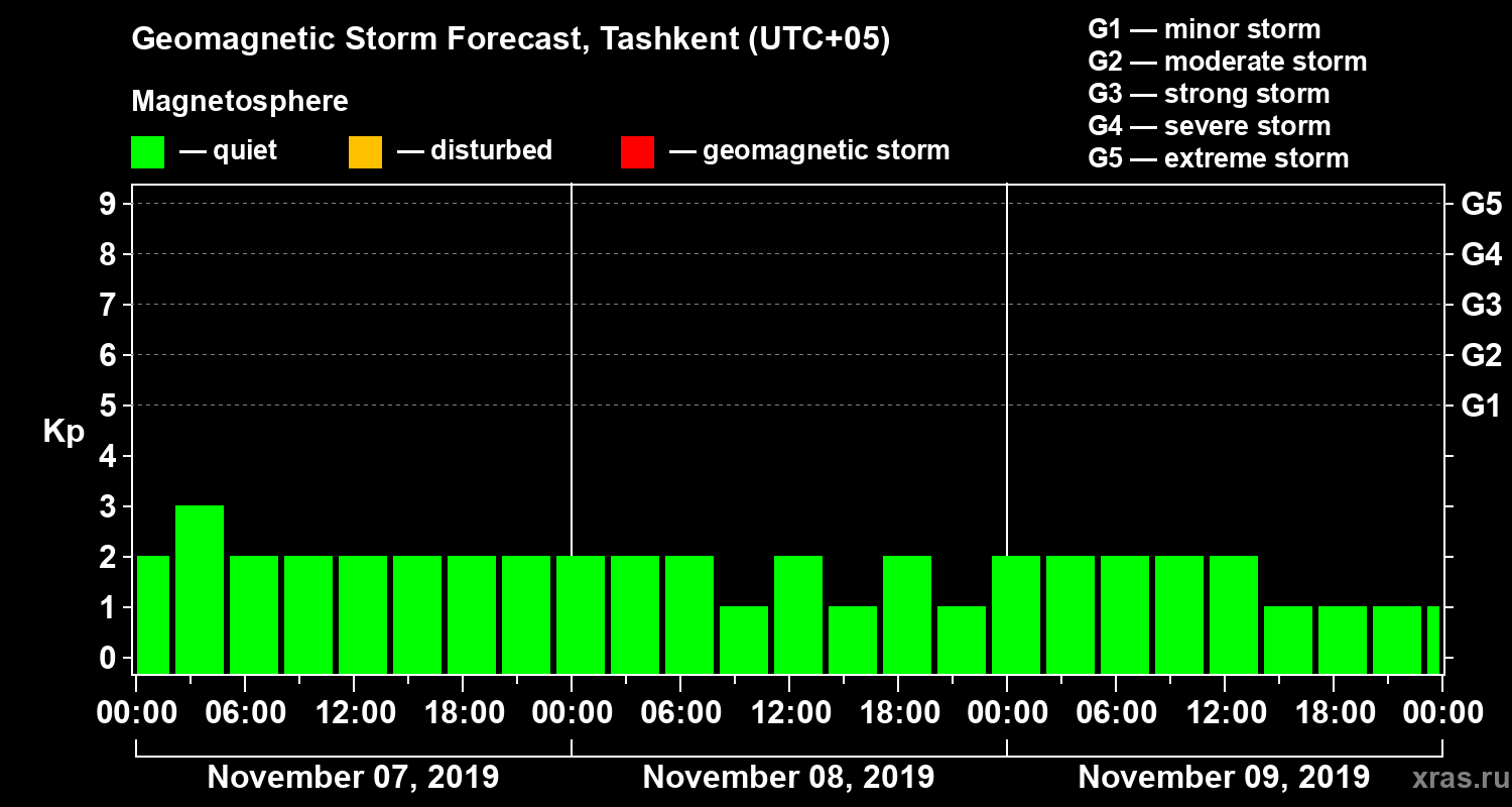 Geomagnetic storm forecast in Tashkent for Nov 07, 2019