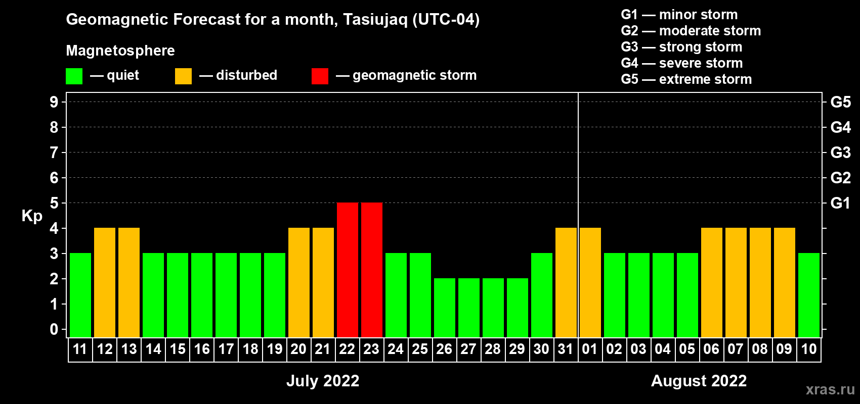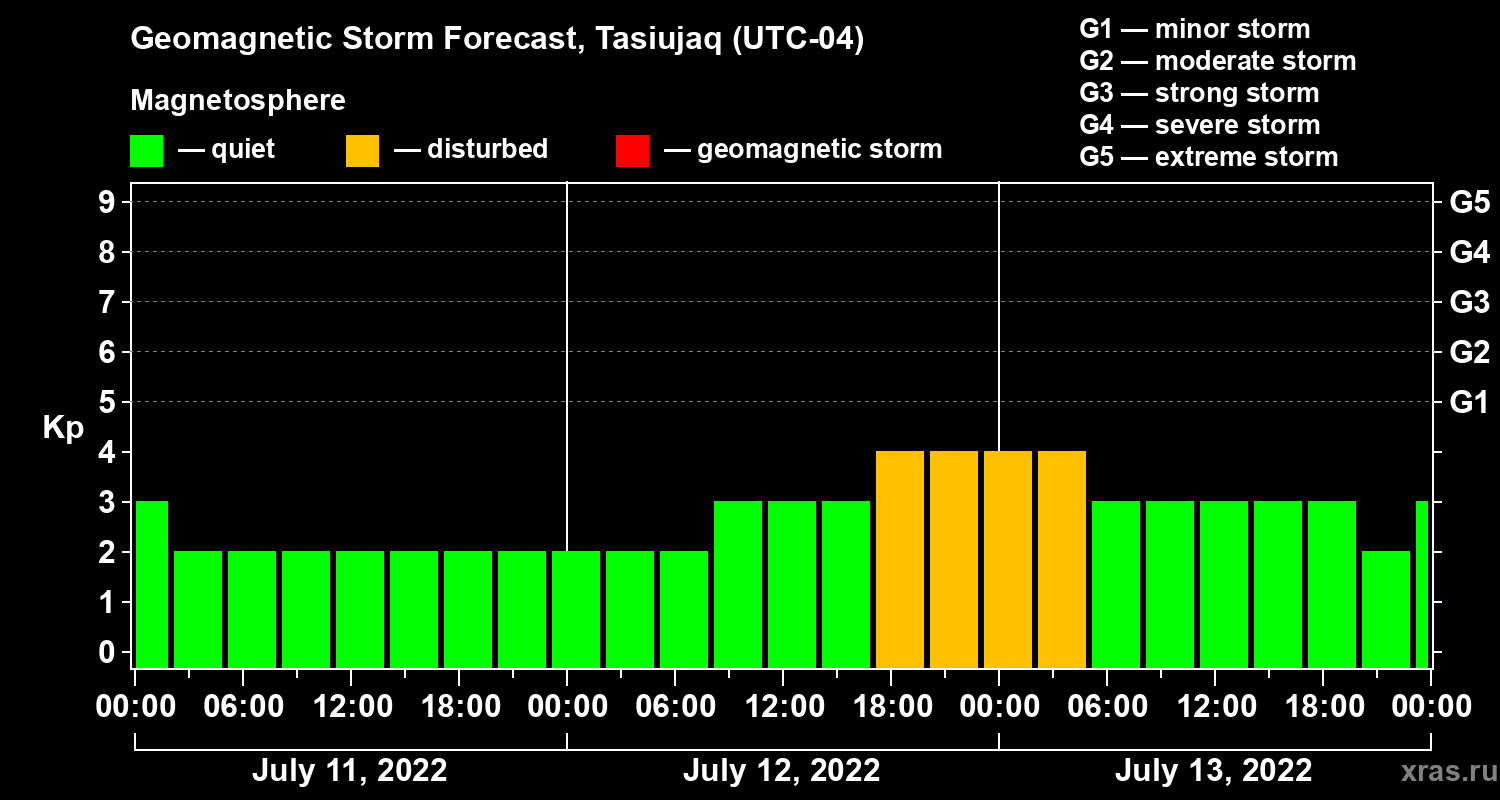 Geomagnetic storm forecast in Tasiujaq for Jul 11, 2022