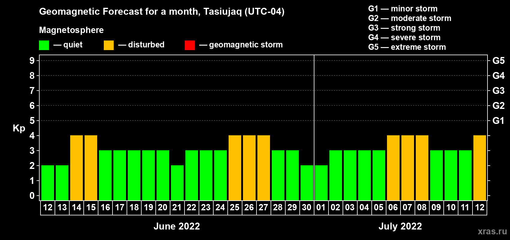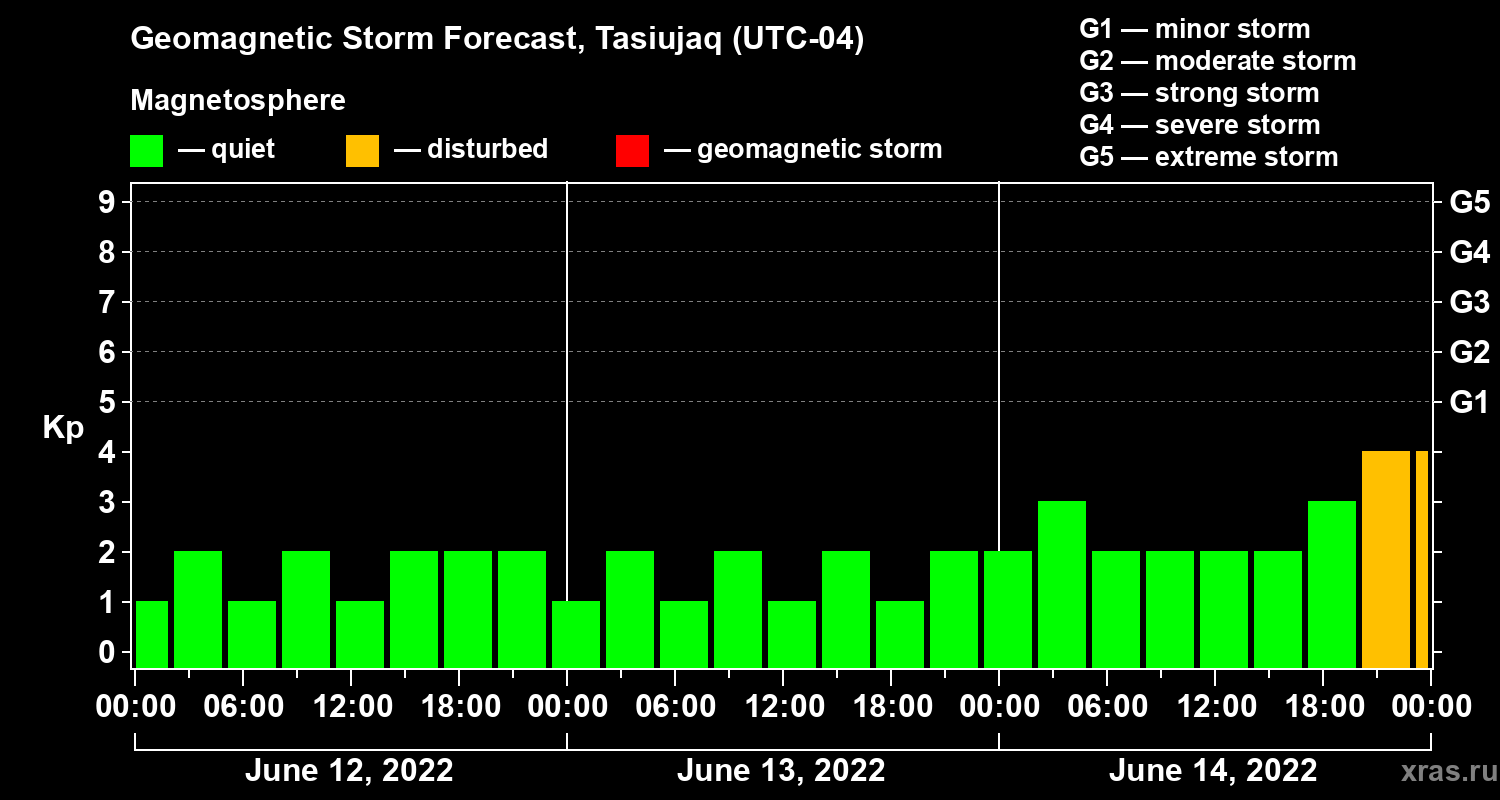 Geomagnetic storm forecast in Tasiujaq for Jun 12, 2022