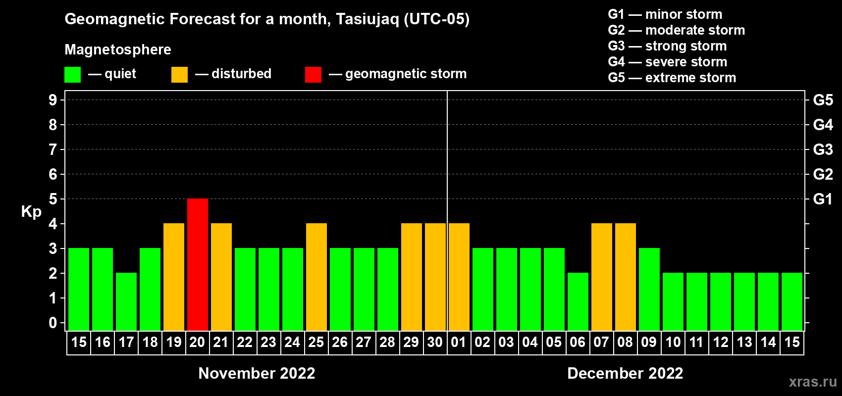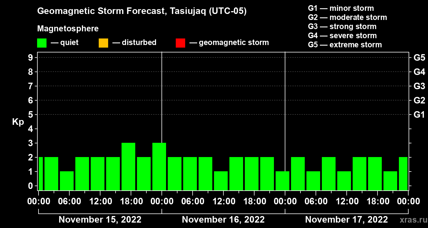 Geomagnetic storm forecast in Tasiujaq for Nov 15, 2022