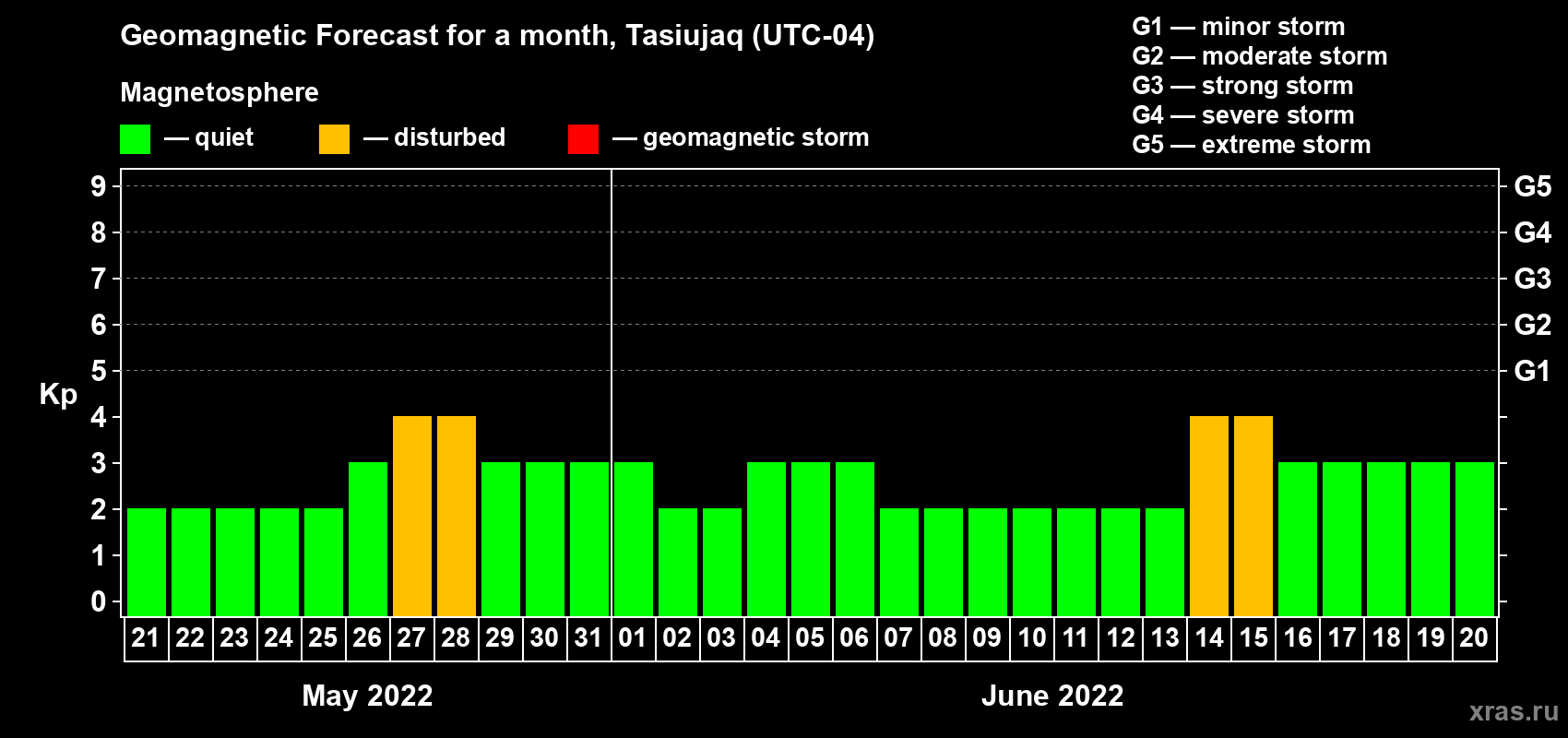 Geomagnetic storm forecast in Tasiujaq for May 21, 2022