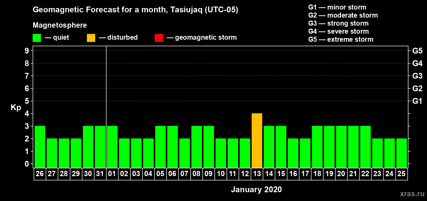 Geomagnetic storm forecast in Tasiujaq for Dec 26, 2019
