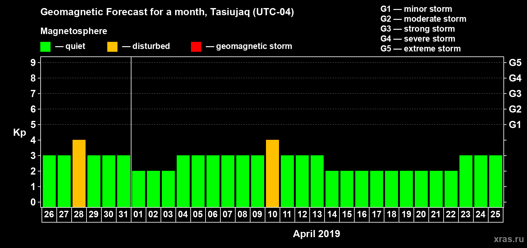 Geomagnetic storm forecast in Tasiujaq for Mar 26, 2019