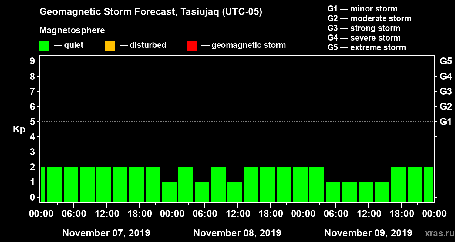 Geomagnetic storm forecast in Tasiujaq for Nov 07, 2019