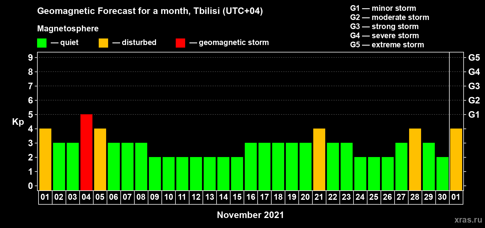 Geomagnetic storm forecast in Tbilisi for Nov 01, 2021