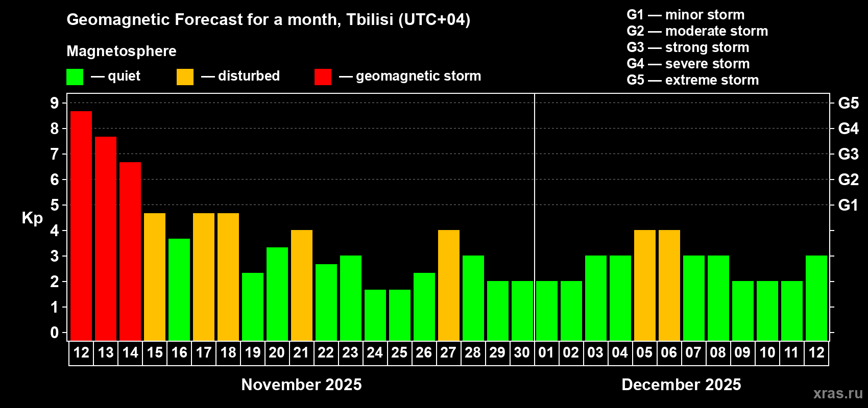 Geomagnetic storm forecast in Tbilisi for Nov 12, 2025