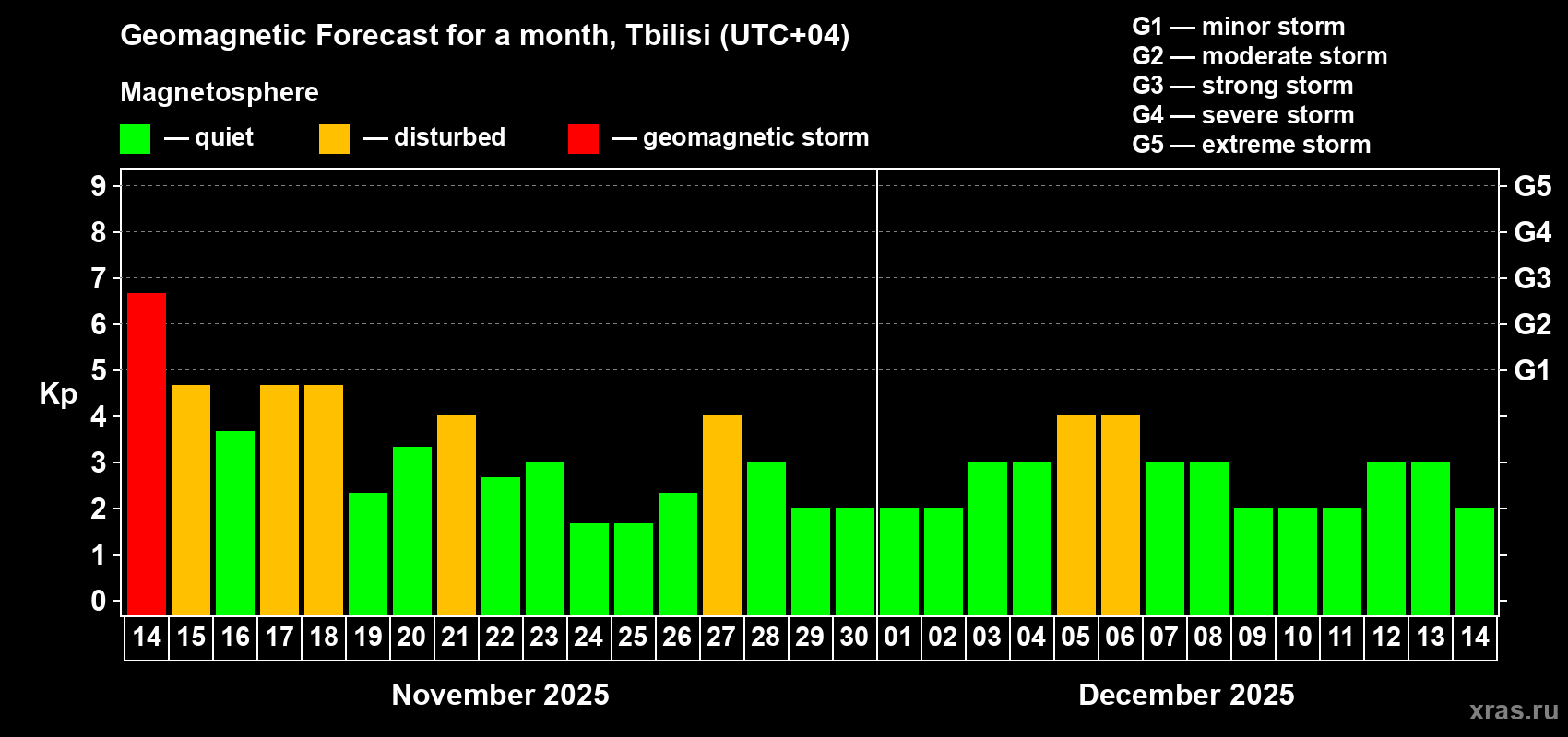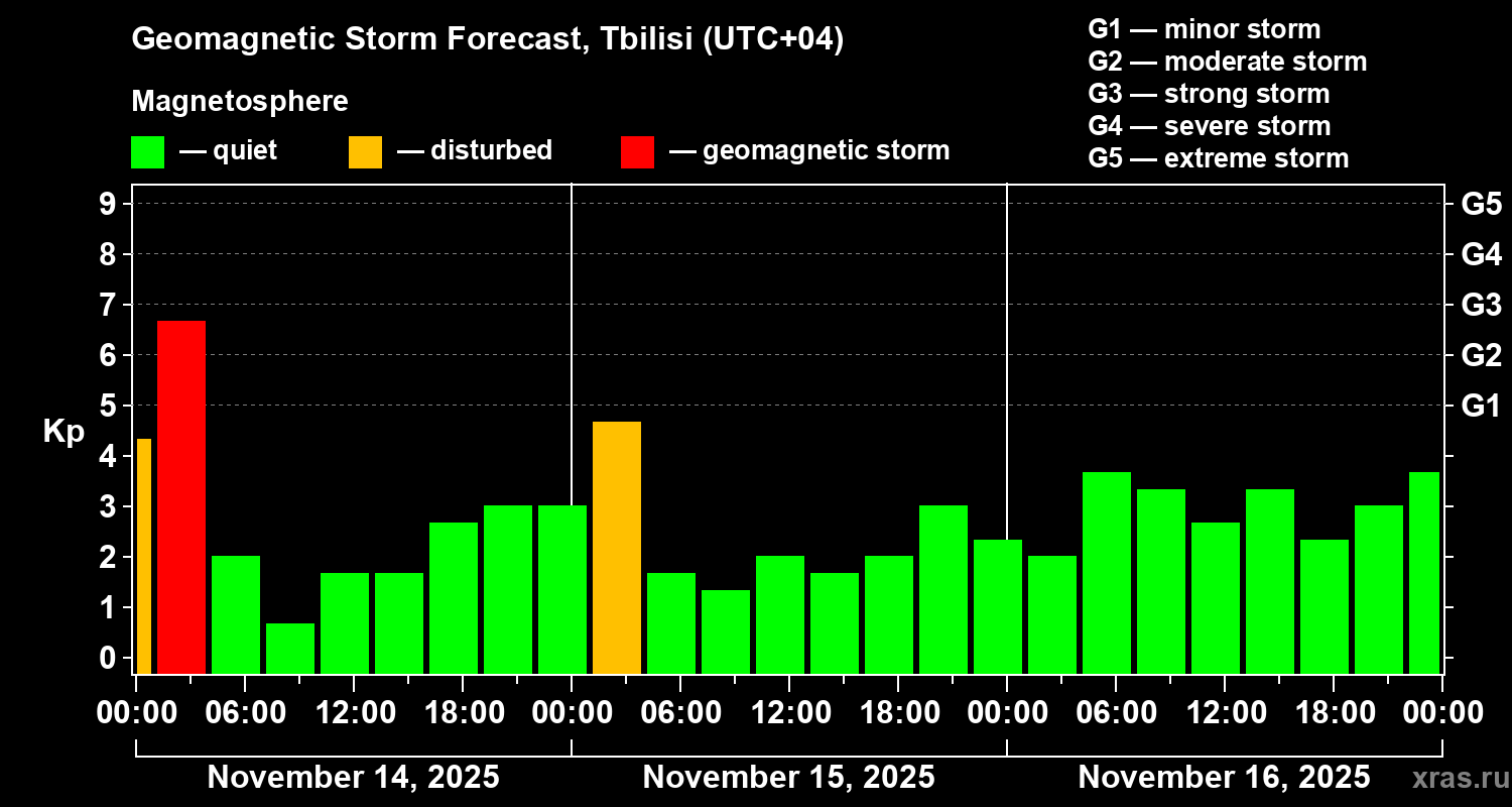 Geomagnetic storm forecast in Tbilisi for Nov 14, 2025