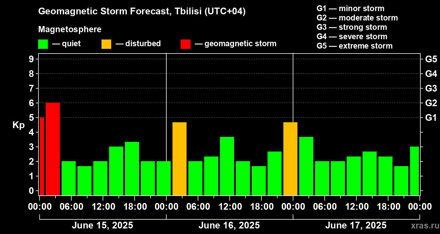 Geomagnetic storm forecast in Tbilisi for Jun 15, 2025