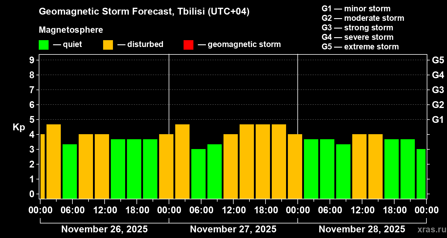 Geomagnetic storm forecast in Tbilisi for Nov 26, 2025