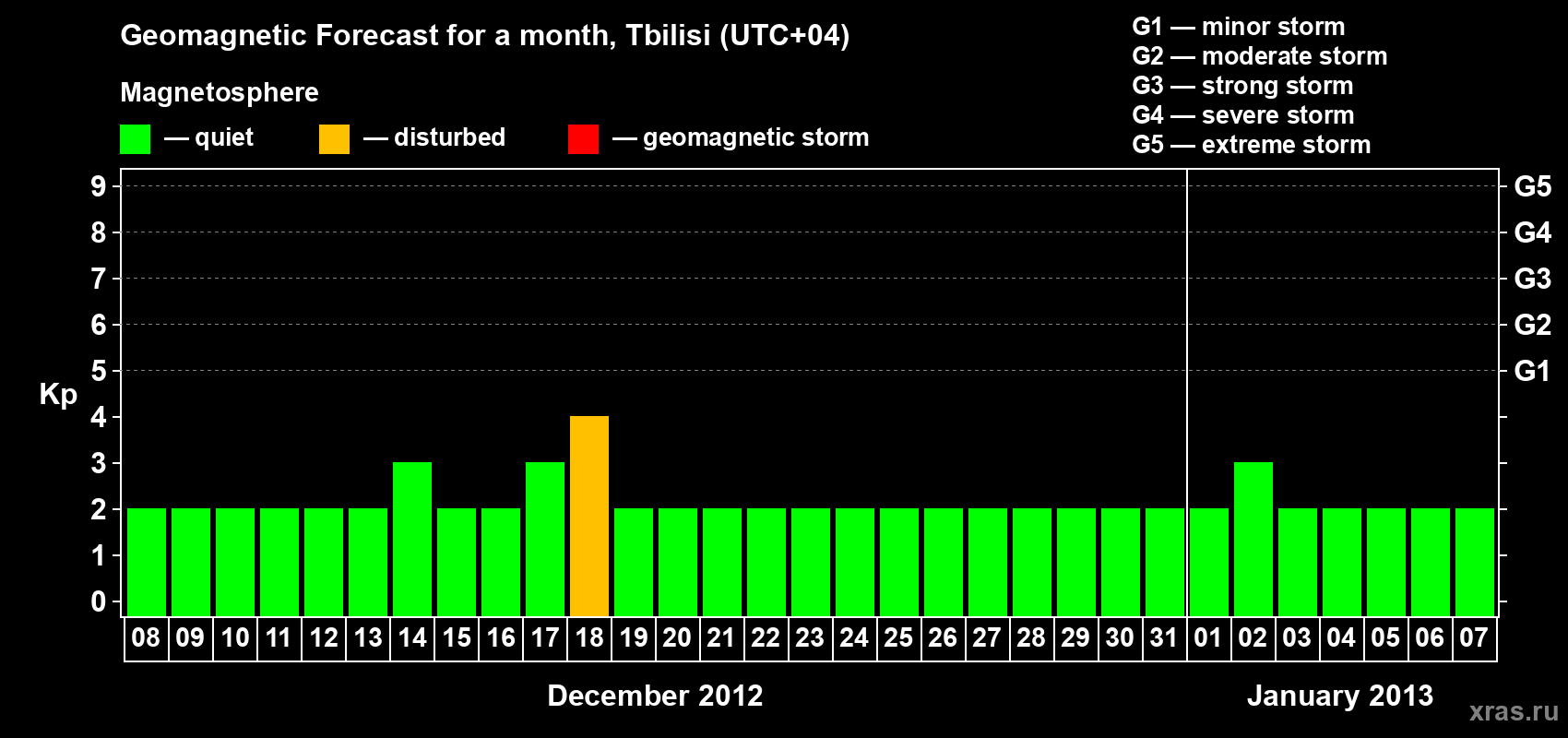 Geomagnetic storm forecast in Tbilisi for Dec 08, 2012