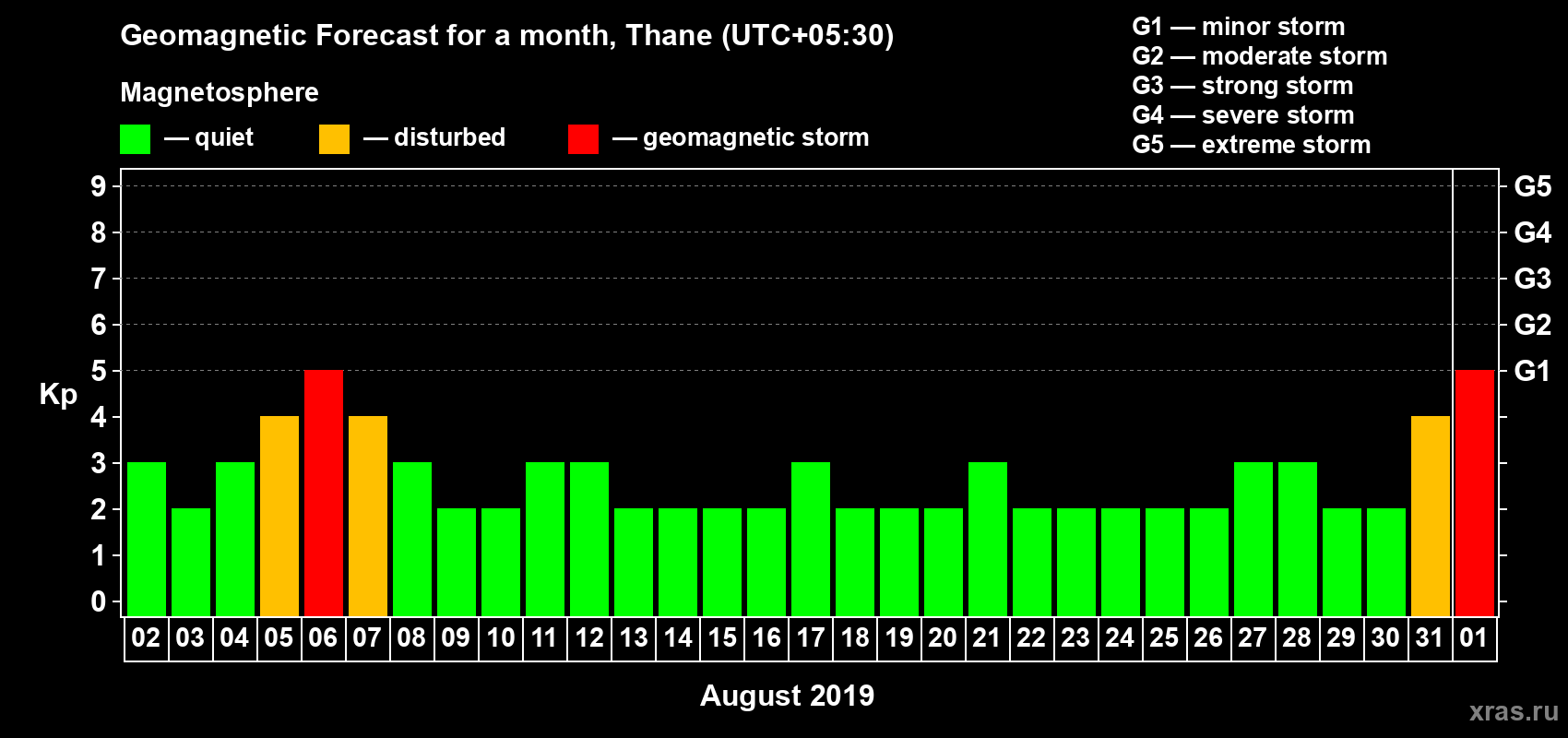 Geomagnetic activity forecast in Thane — Aug 02, 2019