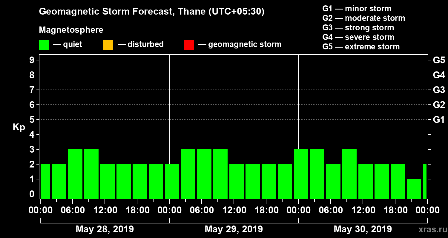 Geomagnetic storm forecast in Thane for May 28, 2019
