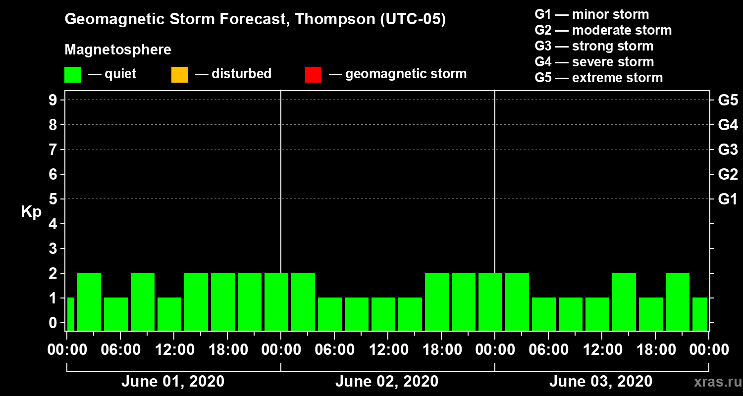 Geomagnetic storm forecast in Thompson for Jun 01, 2020