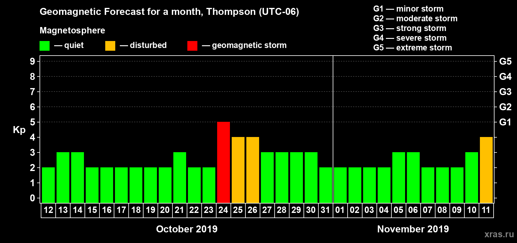 Geomagnetic storm forecast in Thompson for Oct 12, 2019