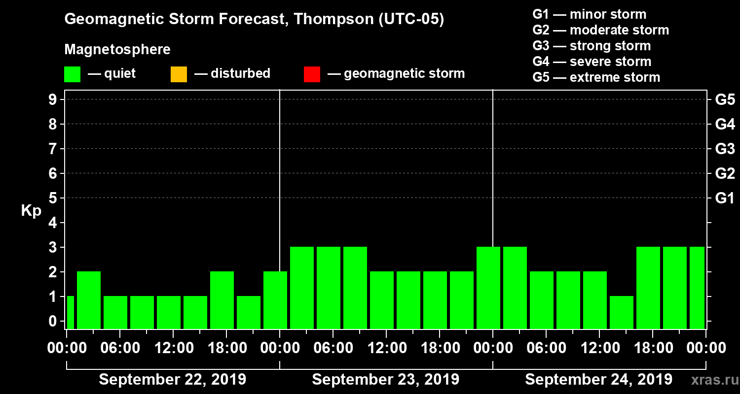 Geomagnetic storm forecast in Thompson for Sep 22, 2019