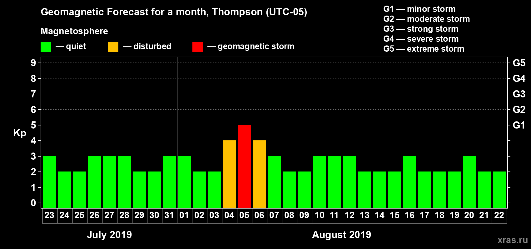 Geomagnetic storm forecast in Thompson for Jul 23, 2019