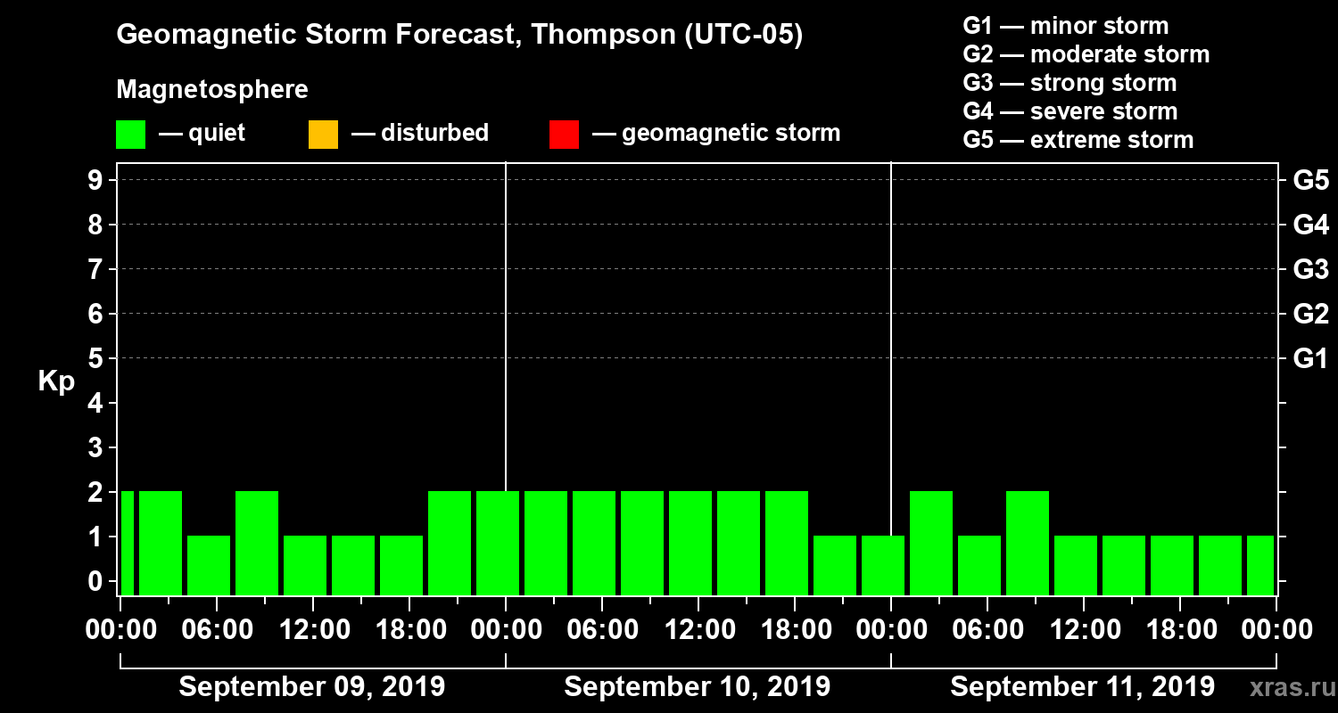 Geomagnetic storm forecast in Thompson for Sep 09, 2019