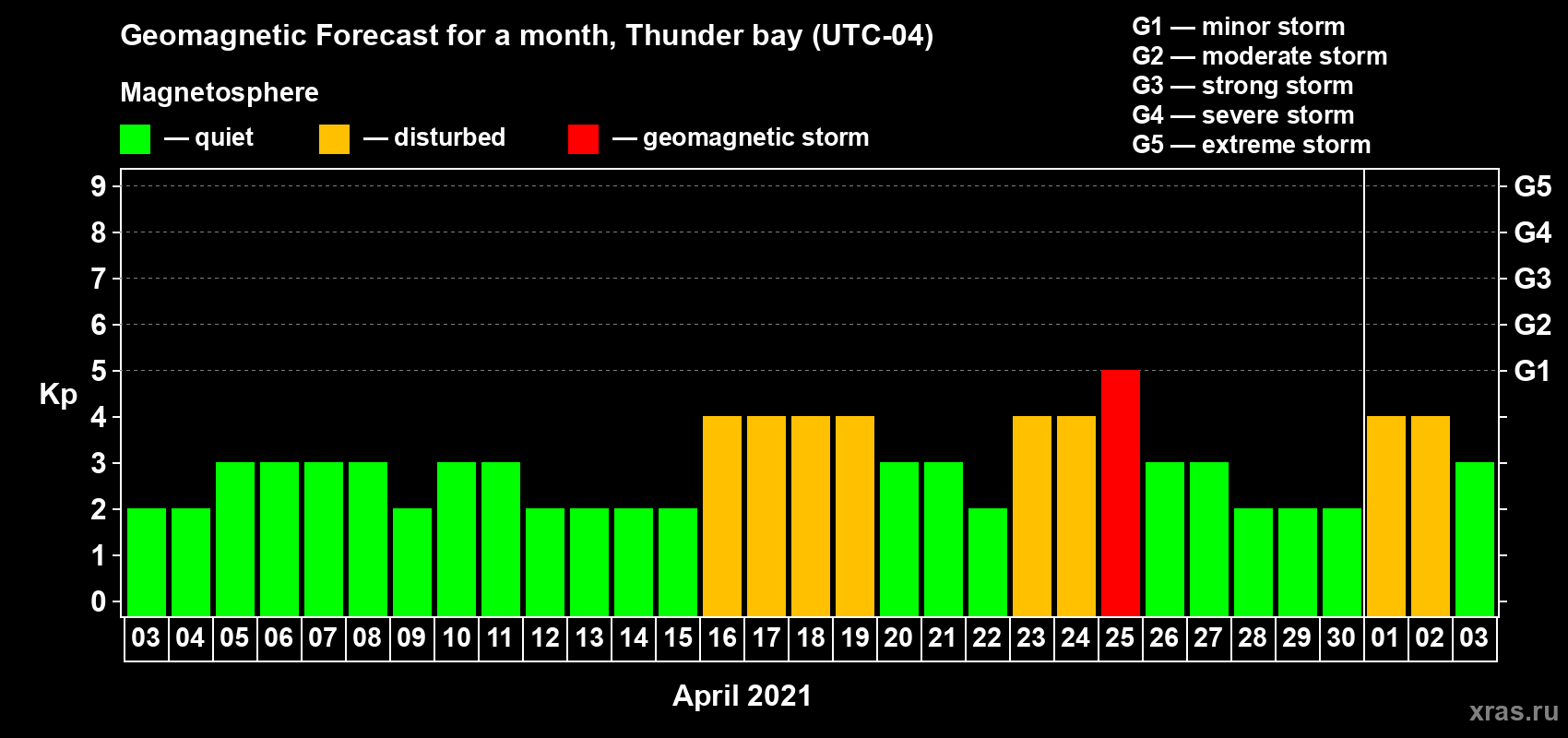Geomagnetic storm forecast in Thunder bay for Apr 03, 2021