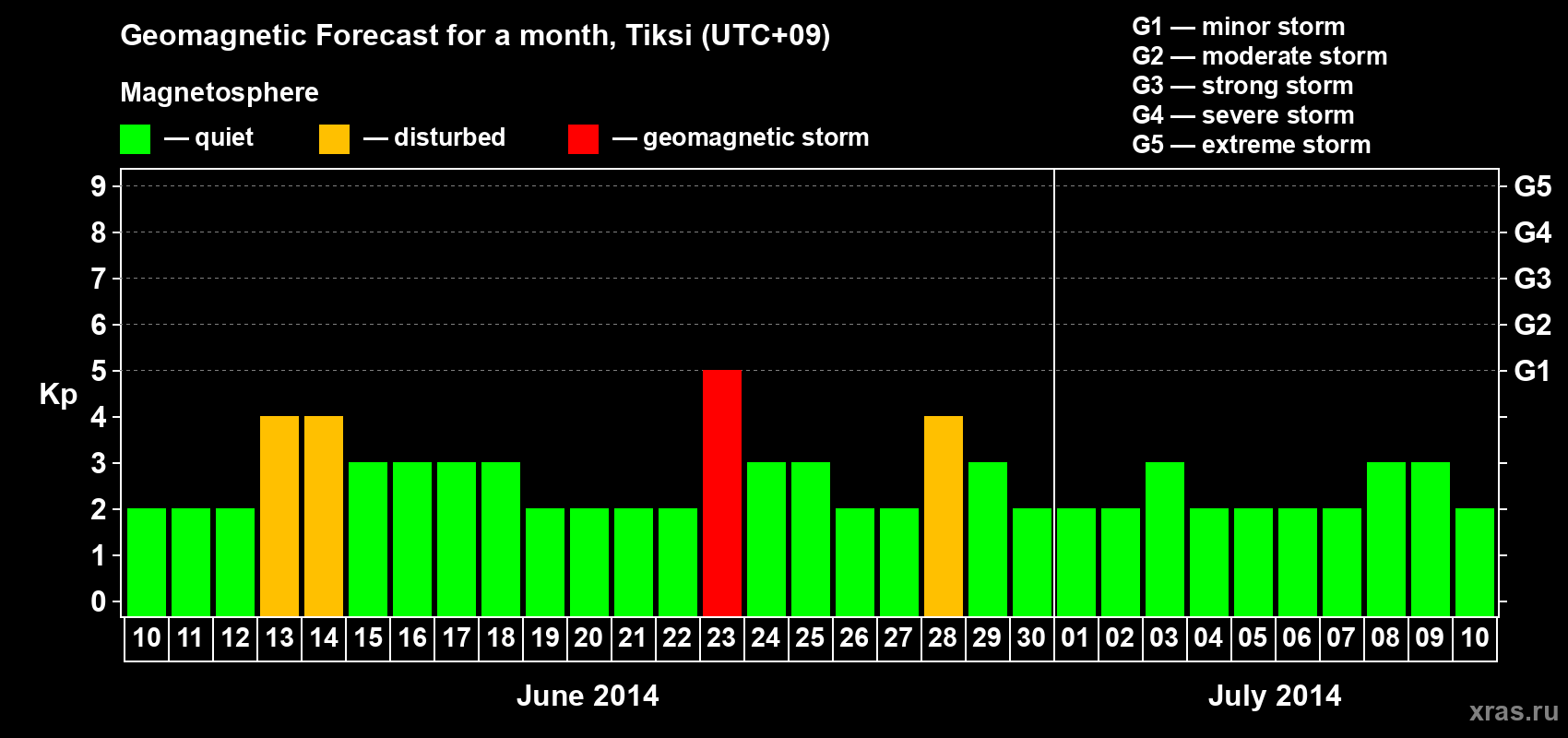 Geomagnetic activity forecast in Tiksi — Jun 10, 2014
