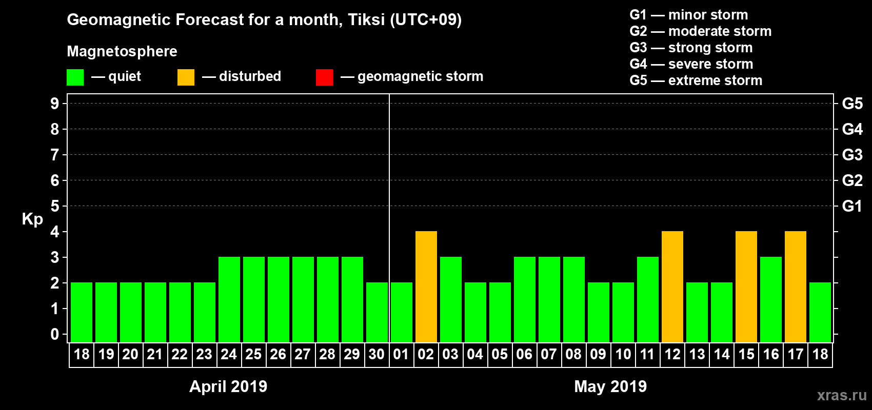 Geomagnetic storm forecast in Tiksi for Apr 18, 2019