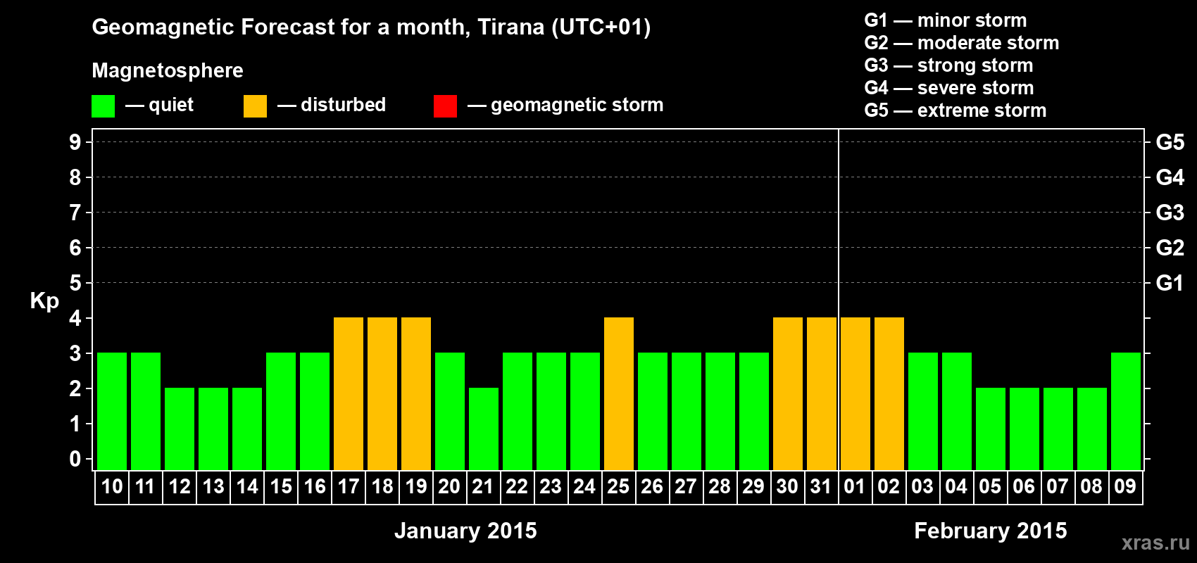 Geomagnetic storm forecast in Tirana for Jan 10, 2015