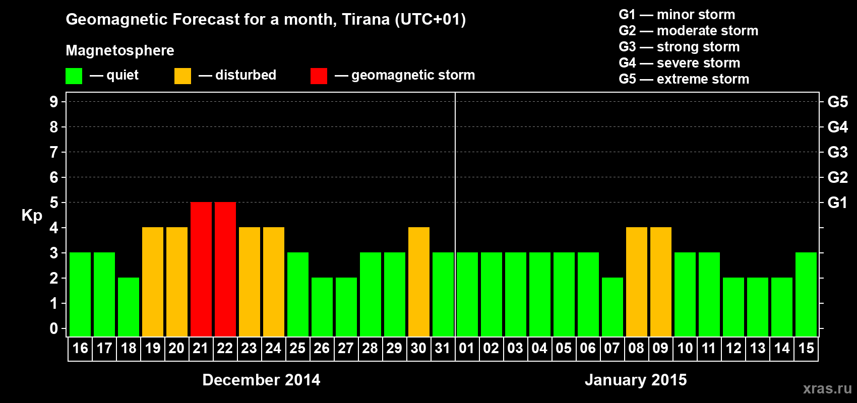 Geomagnetic storm forecast in Tirana for Dec 16, 2014