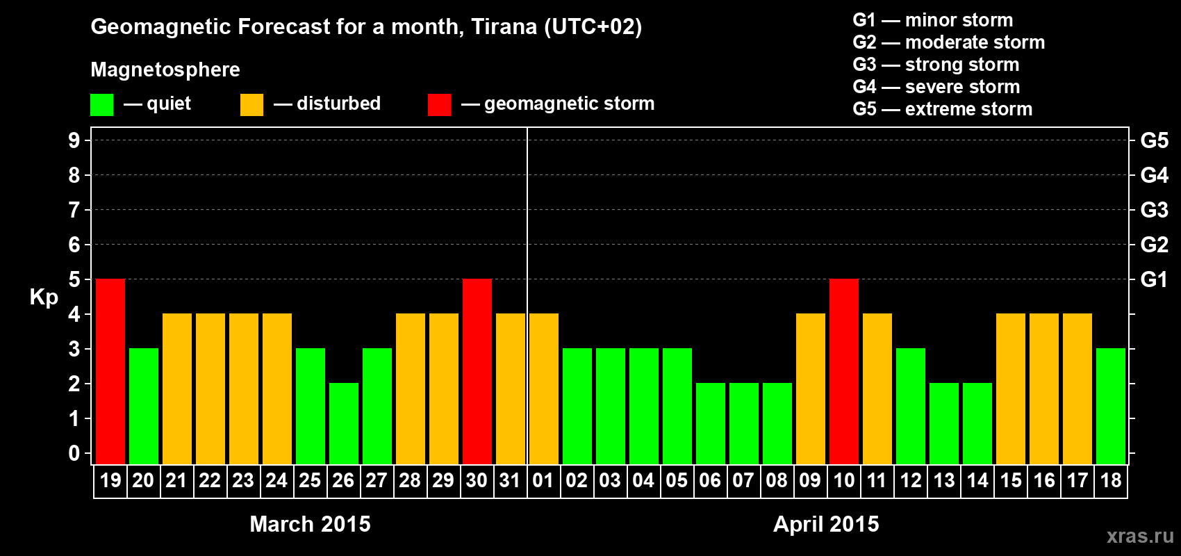 Geomagnetic storm forecast in Tirana for Mar 19, 2015